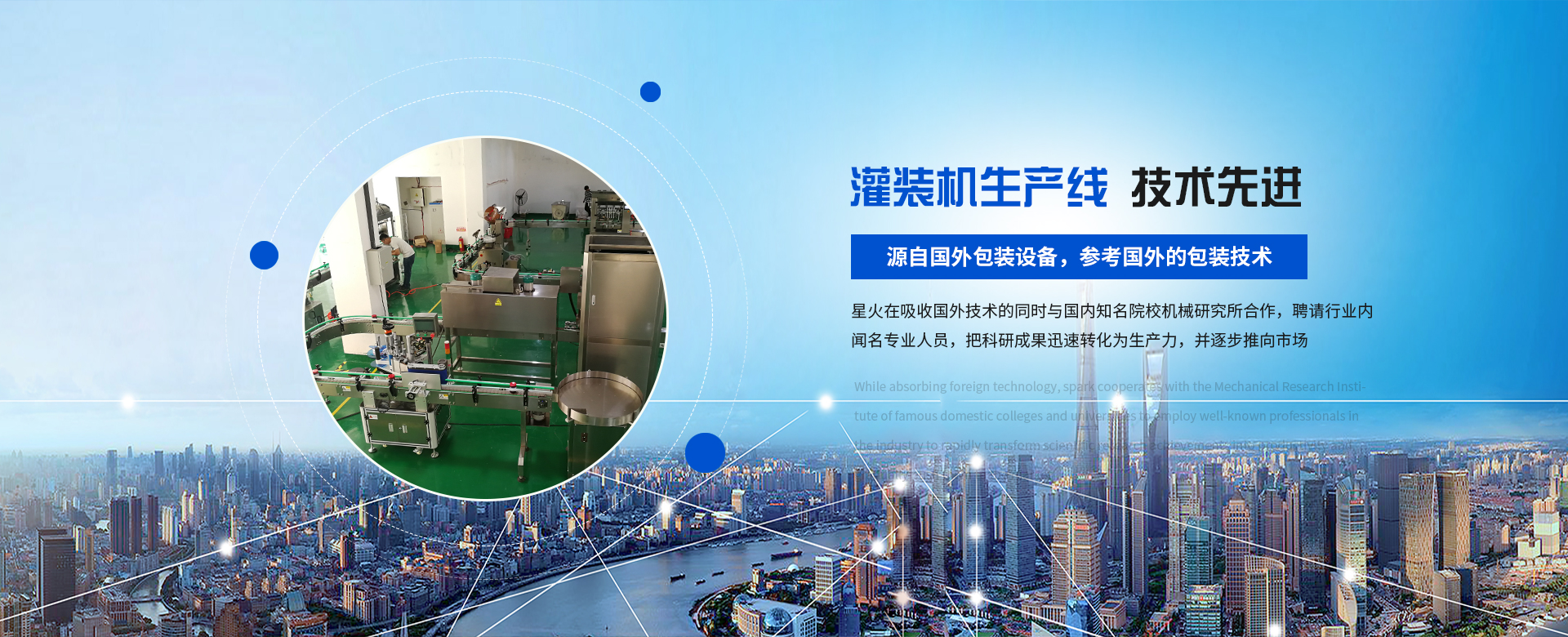 鄭州星火包裝機械有限公司是一家集科研、生產、銷售、服務于一體的高新科技企業,公司現有員工100多人,是一家從事食品、制藥、化工灌裝機、灌裝生產線、無人化智能包裝生成線的專業制造廠家。星火人秉承“誠信、責任、服務、發(fā)展”的經營宗旨,以“提高企業包裝效率”為企業使命;以“科技創新”引導企業的經營與發(fā)展思路,并以企業文化建設的成效來促進品牌的發(fā)展。
